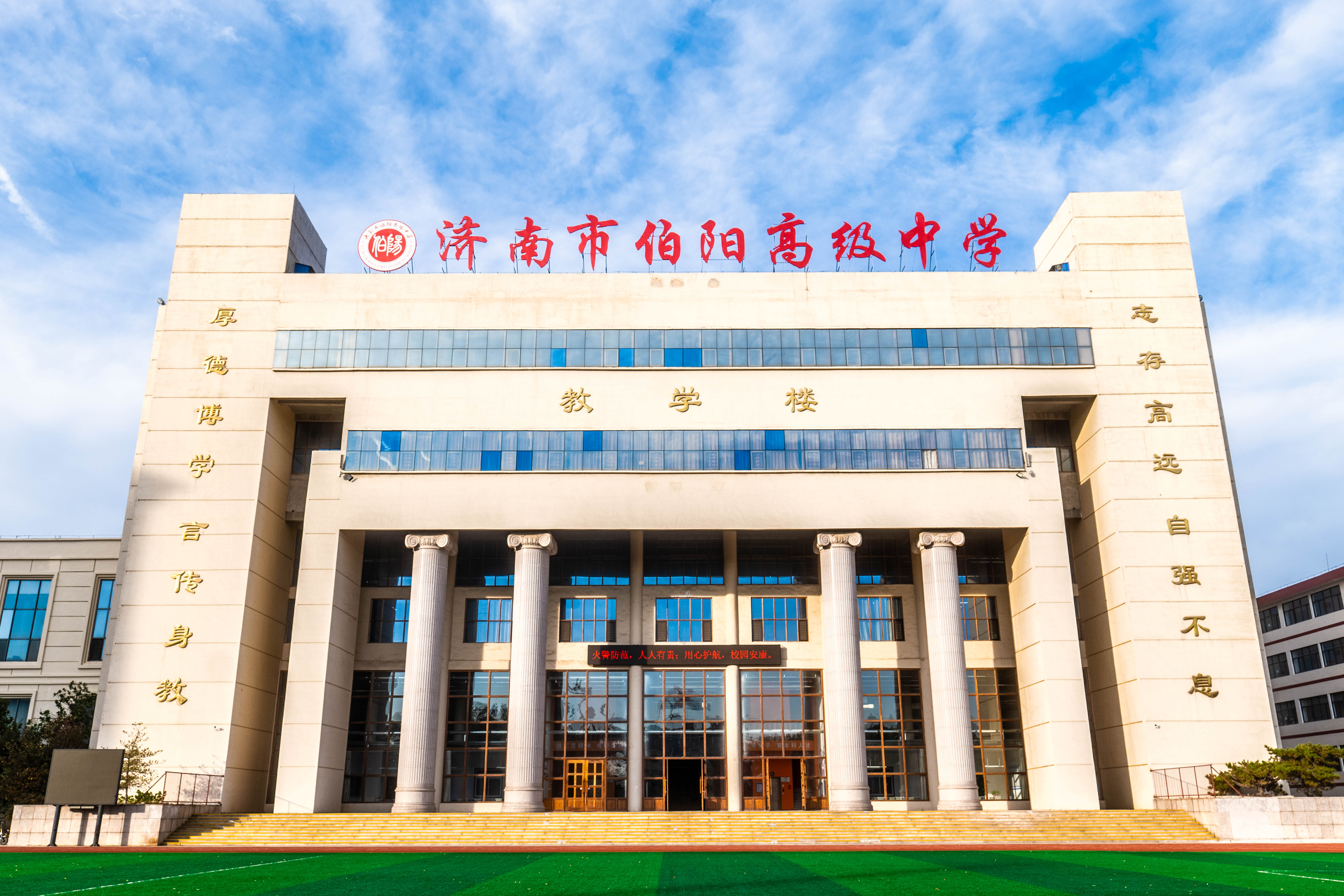 济南市伯阳高级中学是由教育局批准成立的一所全日制普通高中学校。学校位于济南市章丘区经十东路17401号。地处齐鲁科创大走廊,毗邻高校资源圈,东临山东大学龙山校区、南靠复旦大学联合新中心、西依山东财经大学圣井校区,知名高校云集,教育资源丰富,教育优势明显。 学校始终坚持以“处无为之事,行不言之教”为教育理念,以“学生向往、家长满意、教师幸福、社会认可”为办学目标,以“阳光德育,全员导师”为育人模式,以尊重学生个性差异为前提,满足学生特色发展需求。学校树立全面的教学质量意识,遵循严格执行常规,提高教育质量,尊重个性发展,因材施教的教学指导思想,强化教学精细化、深入化和个性化管理,引领学生成长为品德良好、身心健康、知识丰富的高中学子。